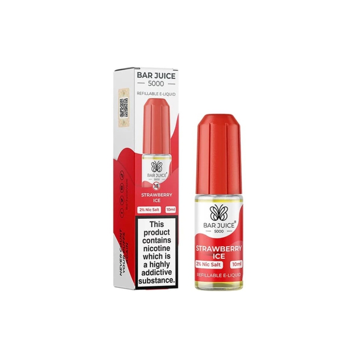 Strawberry Ice nic salt e-liquid by Bar Juice 5000 is a fruity vape with a cool finish. On the exhale you’ll taste the authentic flavour of juicy strawberry, followed by a chilly ice exhale.